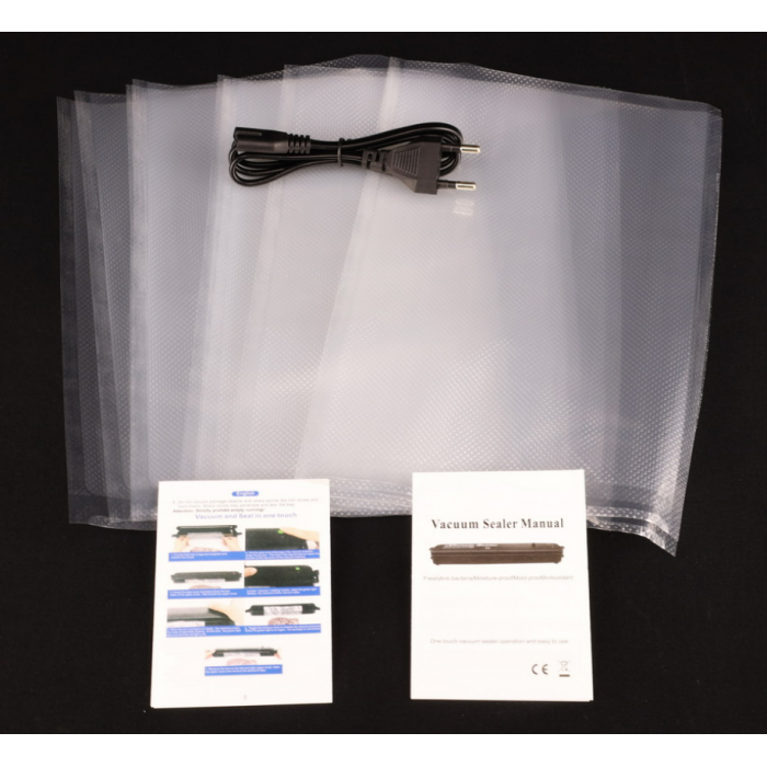 Цей вакууматор має потужність 90 Вт, що забезпечує швидке та ефективне видалення повітря з пакетів. Завдяки компактному дизайну, корпусу з міцного пластику та простому управлінню, він ідеально підходить як для щоденного використання вдома, так і для активного способу життя – подорожей, пікніків чи кемпінгів.