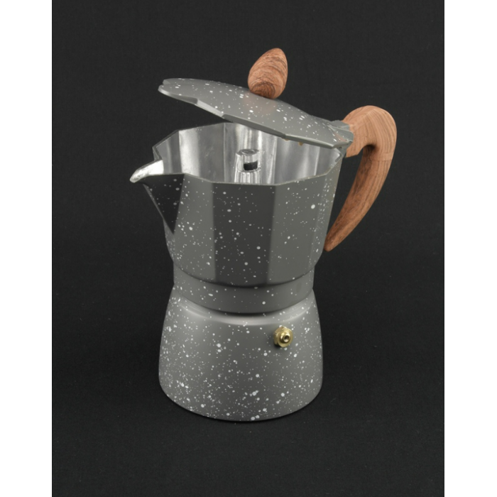 Гейзерна кавоварка виготовлена з алюмінію. Посуд з алюмінію міцна і легка. Експлуатувати просто, потрібно засипати каву і налити воду, поставити на плиту і трохи почекати. Легко очищається навіть у прохолодній воді. Має сучасний дизайн, зручну термостойкую ручку і займає мінімум місця на кухні. Відмінний вибір для будинку або кафе / ресторанів.