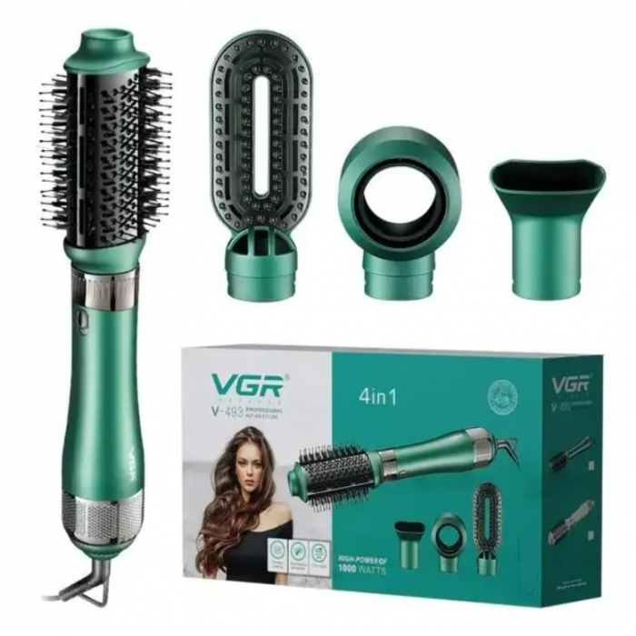 Фен-щітка 4 в 1 потужністю 1000 Вт з 2 режимами нагріву, функцією холодного повітря, захистом від перегріву та 4 насадками. За допомогою даної моделі можна одночасно висушити і укласти волосся, не витрачаючи час на два ці процеси багато часу.
