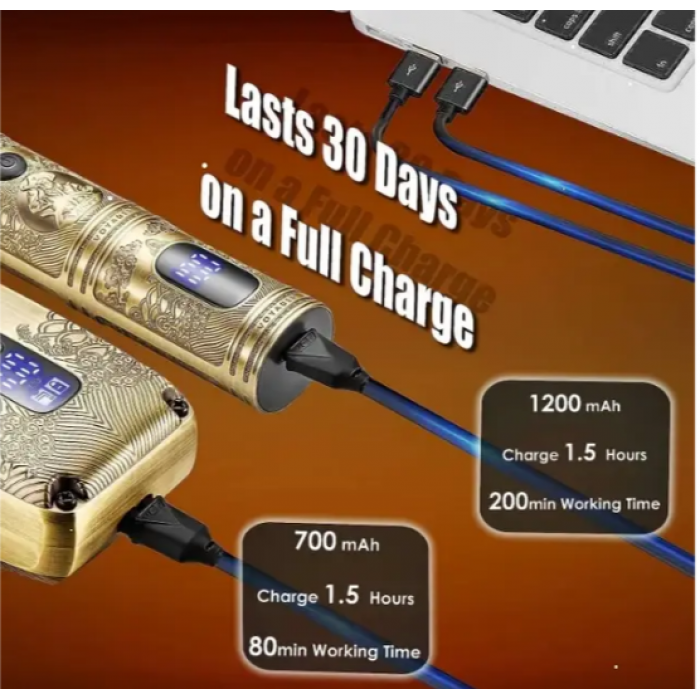 Бездротова машинка для стрижки волосся: леза виготовлені з високоякісної нержавіючої сталі, 4 змінні насадки для регулювання довжини стрижки від 1 до 7 мм, працює 200 хвилин від акумулятора ємністю 1200 мАг, заряджається за 1,5 години, корпус виготовлено з металу. Машинка також має захисну кришку для різальних лез, що забезпечує безпеку зберігання та запобігає випадковим пошкодженням.