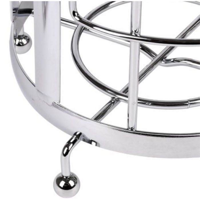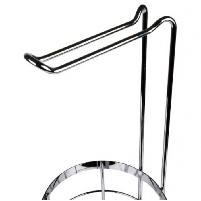 Напольний тримач для туалетного паперу використовується для акуратного зберігання та розміщення рулонів у ванній кімнаті або санвузлі. Основне відділення розраховане на зберігання до 4 запасних рулонів, а верхня планка призначена для встановлення рулону, що використовується. Завдяки цьому тримач поєднує функції зберігання та подачі, що дозволяє скоротити необхідність частої заміни паперу. Хромоване покриття стійке до утворення іржі за стандартних умов експлуатації та зберігає зовнішній вигляд при регулярному контакті з вологою. Догляд за поверхнею не вимагає спеціальних засобів: достатньо протирати виріб м'якою вологою тканиною та уникати абразивних засобів для чищення, щоб зберегти блиск металу. Підлоговий тип встановлення позбавляє необхідності свердління стін і дає можливість за необхідності швидко змінювати розташування аксесуара. Такий тримач підходить для домашнього санвузла, готельних номерів та офісних приміщень, де важливе поєднання місткості та зручного доступу до паперу.