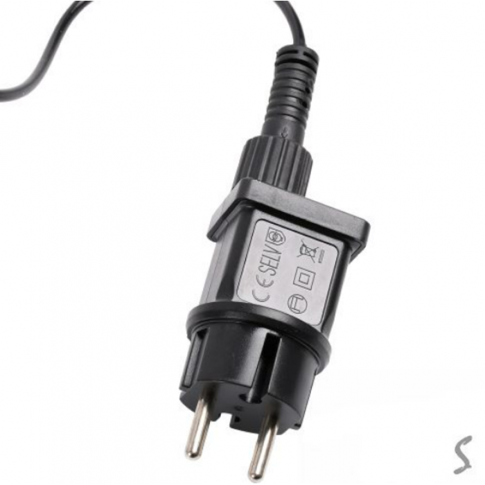 Ця гірлянда має підвищену стійкість до впливу вологи та погодних умов, що робить її ідеальним варіантом для використання на вулиці. Вона працює від стандартної електричної мережі, забезпечуючи яскраве та енергоефективне освітлення, що підкреслює святкову атмосферу.