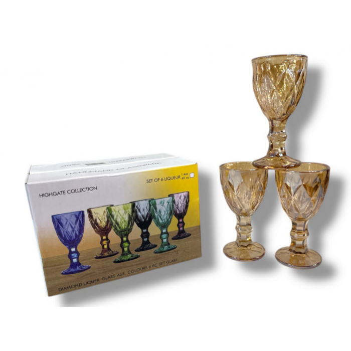 Елегантний набір з шести чарок для лікеру – це вишукане доповнення до вашого домашнього бару. Келихи виконані з міцного скла з гранованим візерунком, який надає їм розкішного вигляду. Вони ідеально підходять для подачі лікеру, наливок, міцних напоїв та десертних вин. Цей набір стане чудовим подарунком для поціновувачів вишуканого посуду та додасть елегантності будь-якому гулянню.