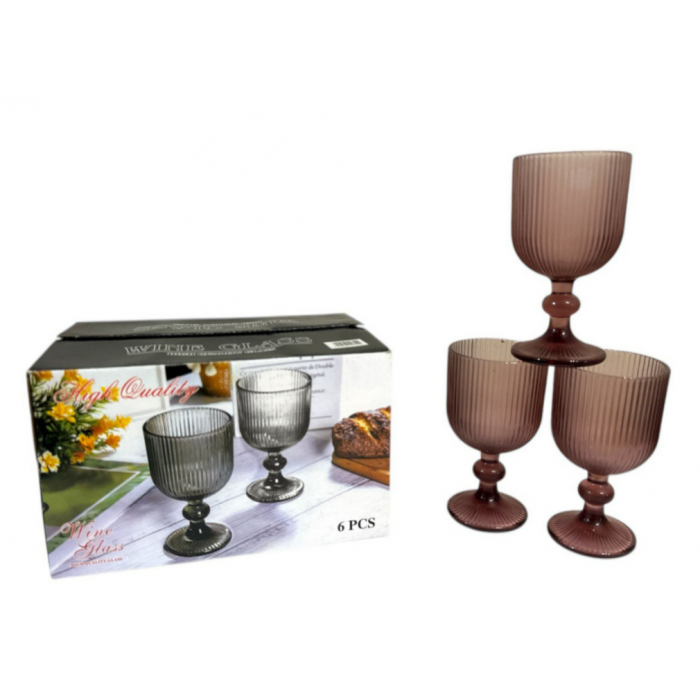 Стильний набір із 6 винних келихів з вишуканим рельєфним дизайном стане чудовою прикрасою вашого святкового столу. Ці келихи ідеально підходять для подачі вина, шампанського, коктейлів та інших напоїв. Завдяки якісному склу та зручній формі, вони не тільки красиво виглядають, але й комфортні у використанні.