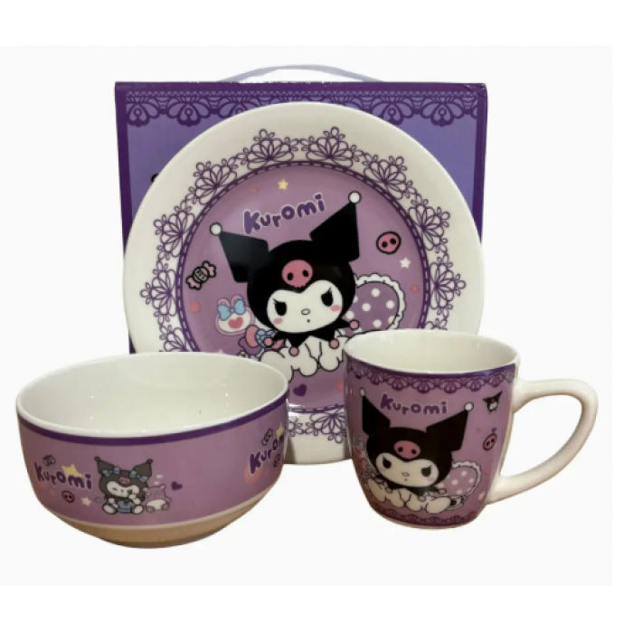 НАБІР ДИТЯЧОГО ПОСУДУ КУРОМІ KUROMI 3 ПРЕДМЕТИ СКЛОКЕРАМІКА ВІД 2Х РОКІВ