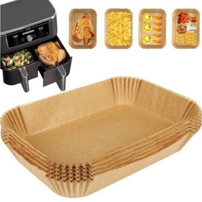 Одноразові пергаментні форми для випікання — зручне рішення для приготування страв у мультипечі та аерофритюрниці. Прямокутна форма ідеально підходить для запікання м’яса, риби, овочів, випічки та десертів без прилипання та підгоряння.