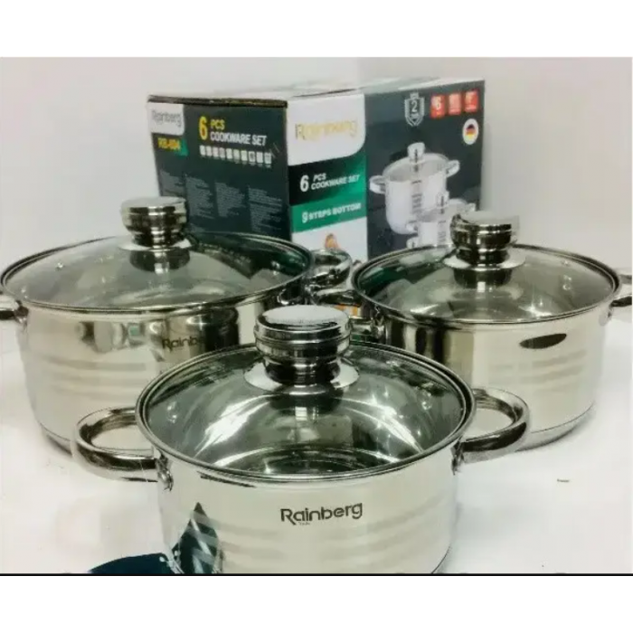 Набір каструль Rainberg RB-605 з 3-х каструль 6,3/7,1/9,4л з кришками з нержавіючої сталі 6 предметів