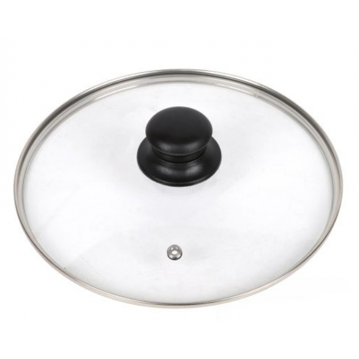 Скляна кришка виготовлена з термостійкого скла, вигнутої форми. Вона має нержавіючий ободок, який перешкоджає відколу скла, а також отвір для відводу утворюється пара. Завдяки прозорому склу можна контролювати сам процес смаження або гасіння різних продуктів не відкриваючи кожен раз. Кришку можна застосувати до сковородам, Казань, сотейник, каструлях. Зверху розташована ручка круглої форми, яка не нагрівається в процесі приготування їжі. Кришка легко миється в теплій воді за допомогою м'якої губки.
