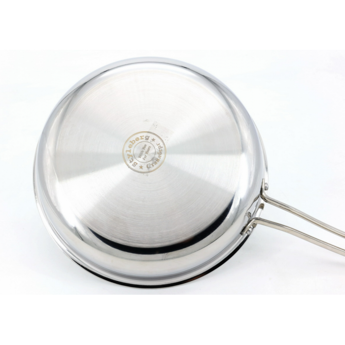 Сковорідка виготовлена з високоякісної нержавіючої сталі, що значно полегшує процес очищення. Її можна мити як вручну, так і в посудомийній машині, що є великим плюсом для зайнятих господарів. Навіть після тривалого використання сковорідка зберігає свій блиск та привабливий зовнішній вигляд.