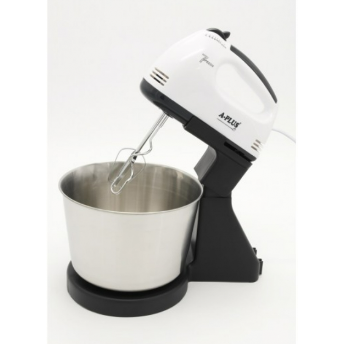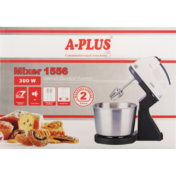 Зручність і простоту міксера не замінити навіть потужним і функціональним кухонним комбайном. Міксер ручною з насадками і чашею поєднує в собі властивості ручного і стаціонарного миксераи і оснащений перемикачем роботи на сім швидкостей. Ручний міксер ТМ A - PLUS обладнаний мотором, потужність якого складає 300 Вт !!! Це дозволяє легко збивати яйця, вершки, соуси, рідке тісто і так далі. У комплекті з міксером окрім стандартних насадок у вигляді вінчиків для збивання і крюків для тесту додається стаціонарний корпус, що дозволяє звільнити руки. Ручний Міксер з чашею ТМ A - PLUS належним чином оцінять хазяйки, які люблять радувати свою сім'ю домашньою випічкою.