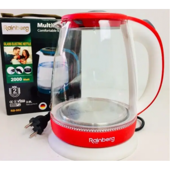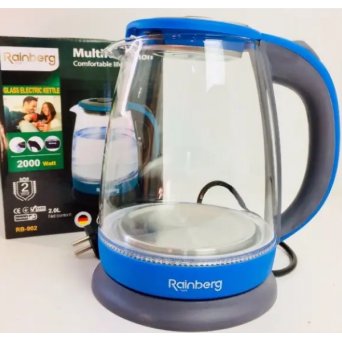 Скляні чайники є екологічно чистими з усіх електрочайників. Але найчастіше їх обирають завдяки їхньому естетичному зовнішньому вигляду. Вода, що кипить, дійсно заворожує і цим видовищем можна милуватися нескінченно. Електричний чайник Rainberg RB-902 обладнаний закритим дисковим нагрівальним елементом, має сітчастий фільтр для очищення кип'яченої води від накипу.