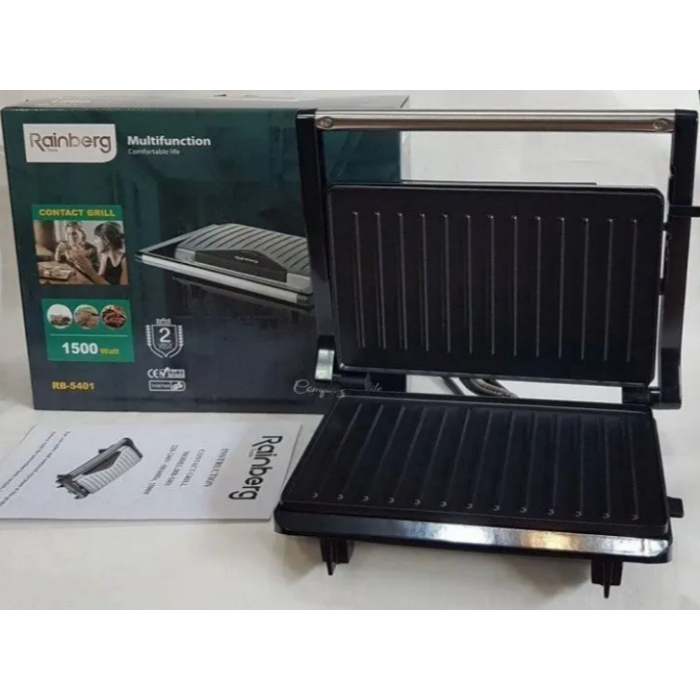 Контактний гриль Rainberg RB-5401 потужністю 1500 Вт стане надійним помічником на кухні. Корисні овочі гриль, м'ясо та м'ясні вироби, сендвічі з хрусткою гриль-корочкою - це і багато іншого легко приготує гриль Rainberg RB-5401.Сендвічниця-гриль Rainberg RB-5401 з регулятором потужності має рифлені пластини для рівномірного обсмажування продуктів. приготувати будь-яке м'ясо, птицю, рибу, овочі і навіть сендвічі, гарячі бутерброди.