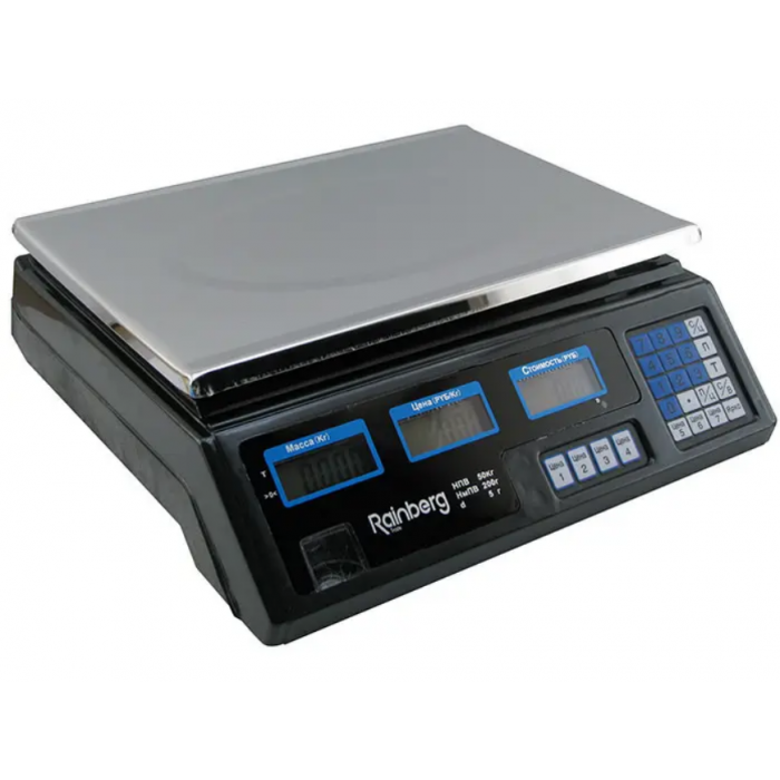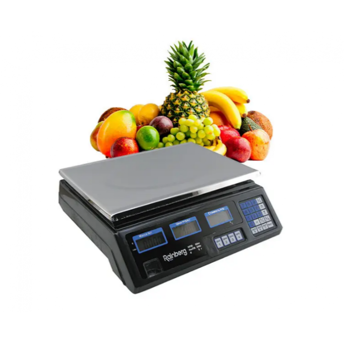 Торгові ваги Rainberg RB-302, виготовлені в пластиковому корпусі.